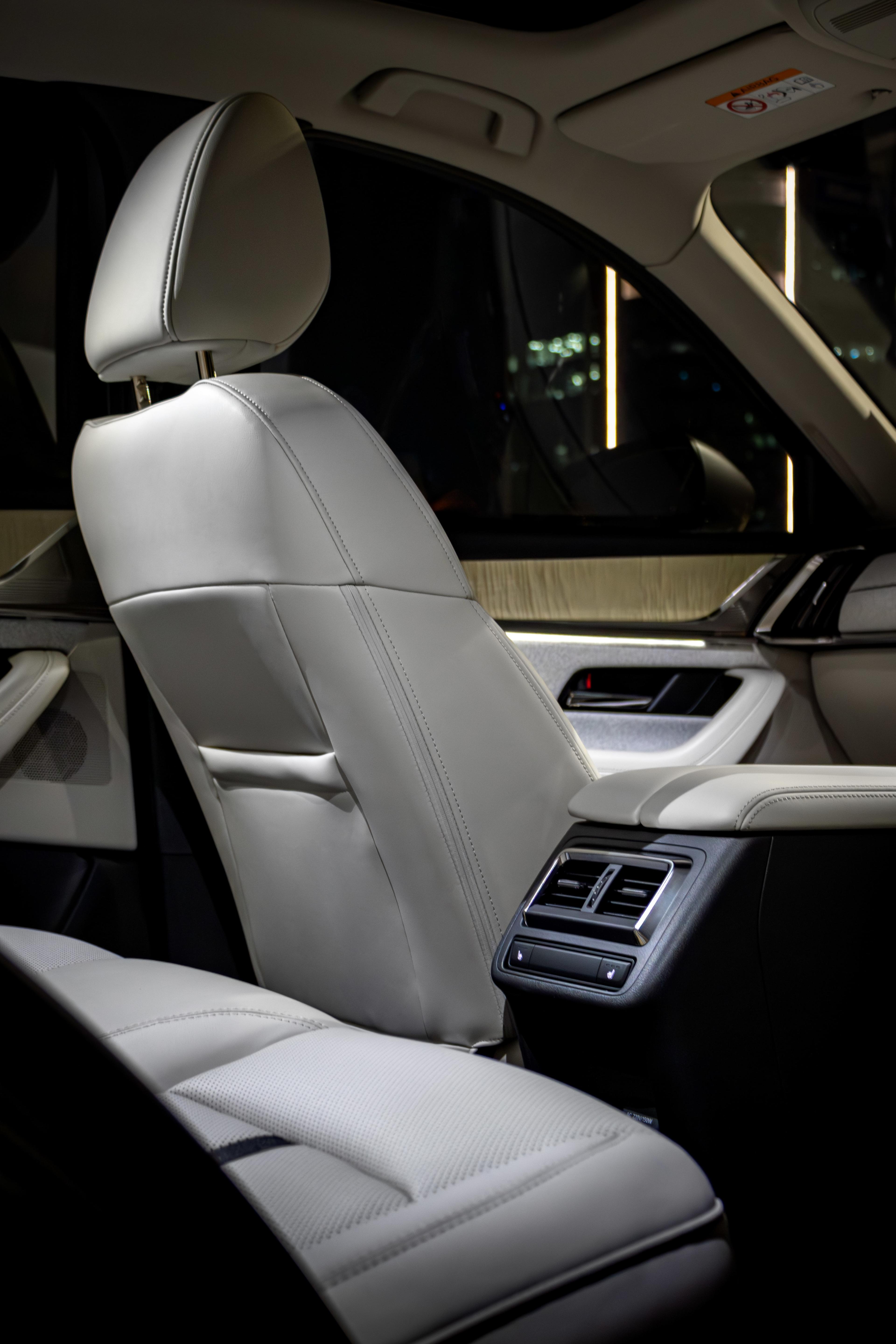 Stepping inside, the CX-60 continues to exhibit a premium quality, however, it may stray from your traditional notions of luxury borne from European brands where everything is wrapped in leather and woodgrain. The cabin captures a significant amount of light creating a fresh, open space for occupants. The range-topping Azami trim that we experienced also included the Takumi Pack interior featuring white Nappa leather and a unique woven textile dash that boosts the lightness of the space even more.